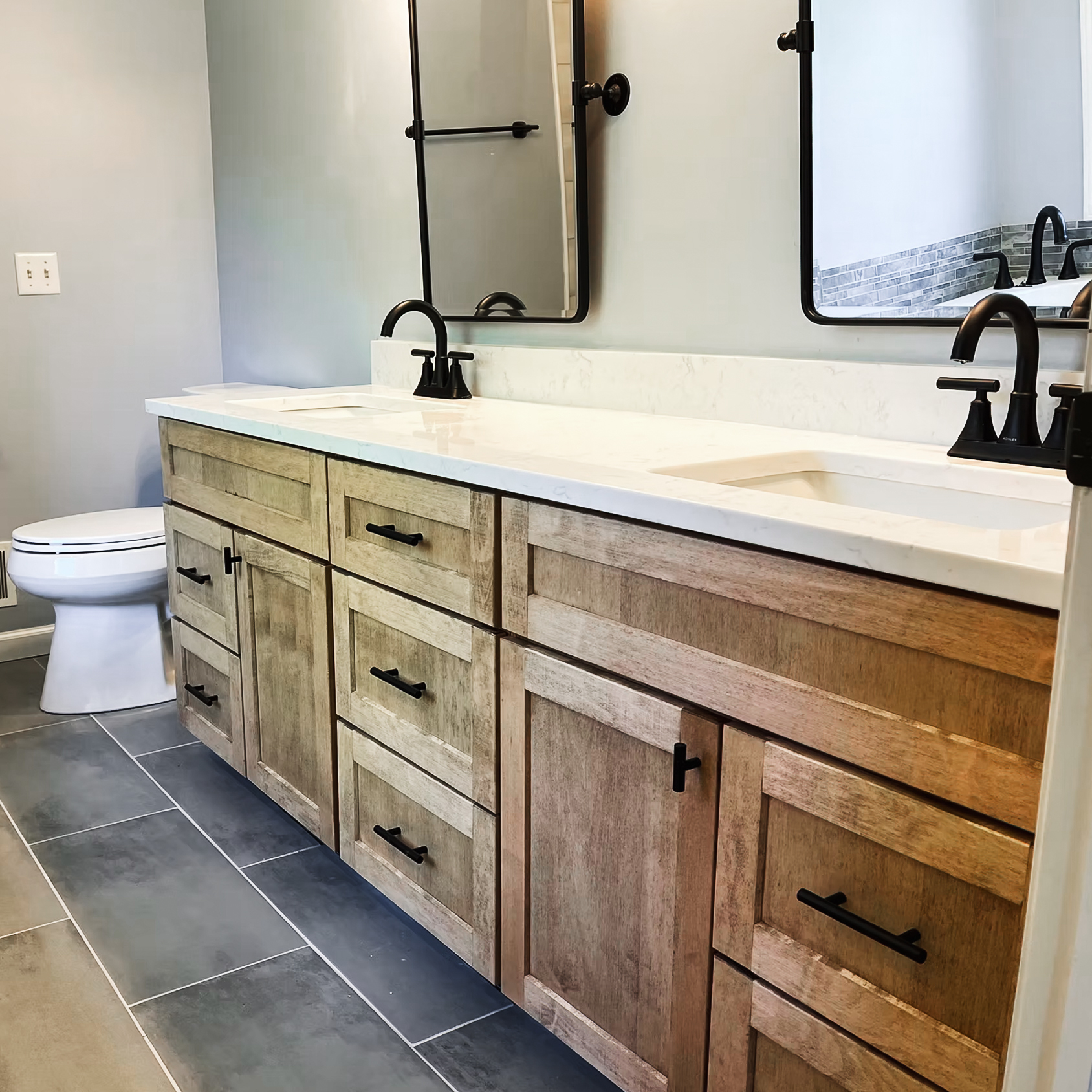 Elevate your bathroom’s elegance with our custom vanities, crafted to provide both beauty and practicality. Tailored to fit your space, our vanities offer storage solutions that suit your lifestyle.